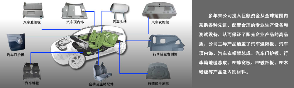 汽車遮陽板系列 汽車頂內飾系列 汽車衣帽架總成系列 汽車行李箱地毯系列 汽車內飾材料系列 其他內飾產品系列